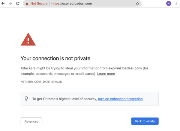 If your SSL security certificate expires, users will see warnings like this when visiting your site