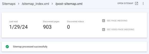 Adding your sitemap helps to check whether Google indexed all pages in your sitemap. We recommend looking into this further if there is a big difference in the ‘submitted’ and ‘indexed’ numbers on a particular sitemap. Maybe there’s an error that prevents some pages from indexing? Another option is that you may need more links pointing to the content that has not been indexed yet.