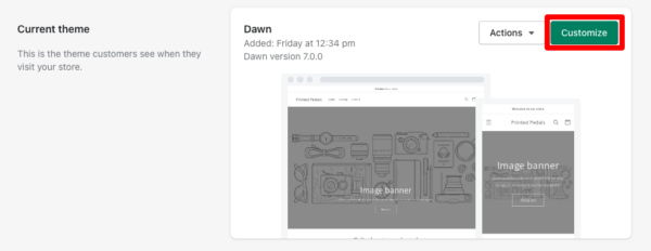 To include a video on the desired page, go to “Themes”, then select “Customize”.