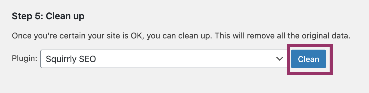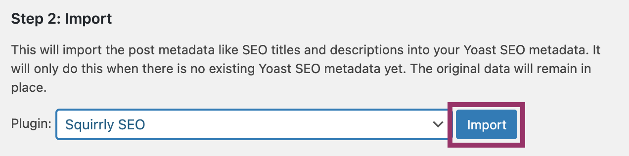 - Since you should have already created the backup, move on to importing your data from Squirrly SEO by clicking the Import button.