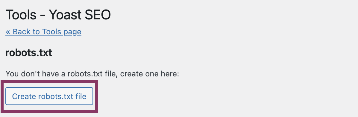 The easiest way to create or edit the robots.txt file is through Yoast SEO in the WordPress Dashboard. To do this, follow the steps below.