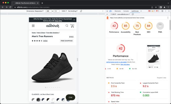 Regularly running a Lighthouse test gives you great insights into the performance of your Shopify store