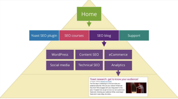 Let’s start by looking at an ideal situation: if you’re starting from scratch, how should you organize your site? We think a well-organized website looks like a pyramid with a number of levels: