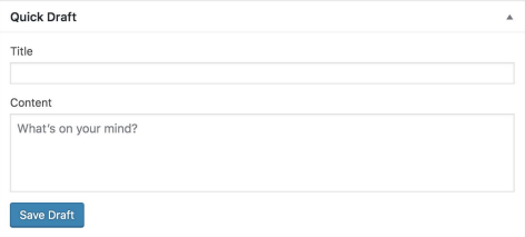 The Quick Draft widget contains a mini post editor that allows you to create drafts instantly from the Dashboard. If you have a new idea, and you want to jot it down quickly, you can do this via the Quick Draft widget. All you have to do is enter a title, write a piece of text and click ‘Save Draft’. As the title already suggests, this is just a draft, and therefore it won’t be published on your site yet. Clicking on the link of the draft will take you to the post editor, where you can edit the draft and write a longer and complete version of your idea.