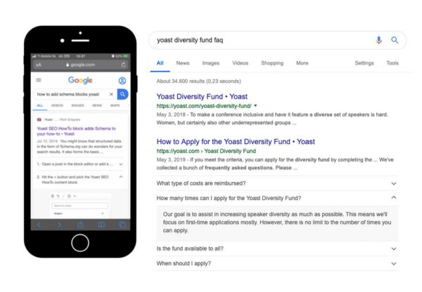 To help you out, the Yoast SEO plugin has structured data blocks for the WordPress block editor. Currently, the Yoast SEO plugin comes with a how-to block and a FAQ block. These blocks automatically add structured data for How-to articles and for FAQ pages, so that’s great for optimizing for questions! By using these blocks, you can get your content to stand out in the search results, like in the images below. Awesome, right?