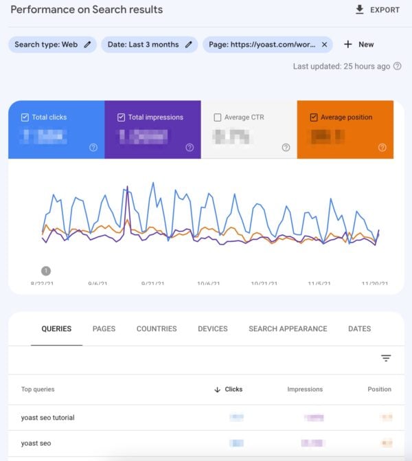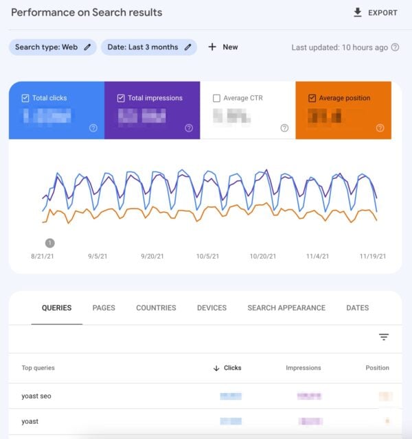 The top queries for our site are ‘yoast seo’ and ‘yoast’
