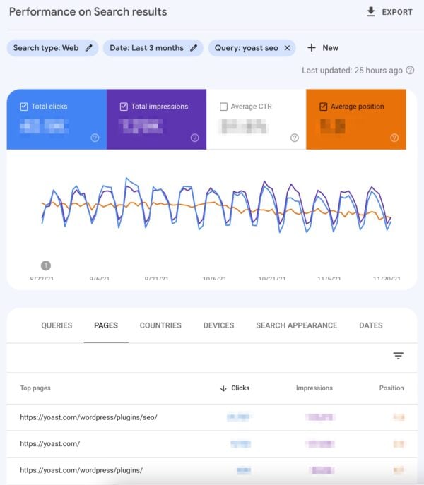 We’ve filtered on the query ‘yoast seo’ to see which pages users land on when they search for that phrase