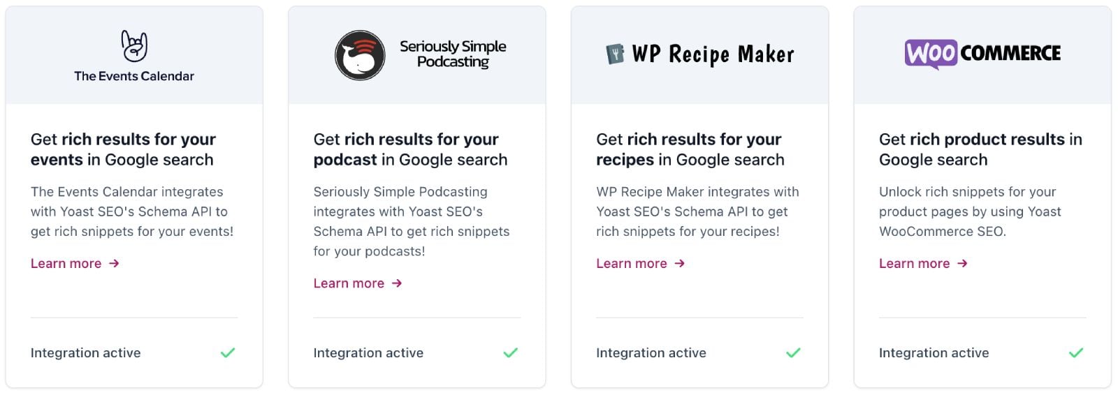 Are you building WordPress plugins and willing to help our 13 million users out by expanding their Schema ouput? Request access to our Schema API to tie your content to Yoast SEO’s Schema graph properly. Please get in touch with our Partnerships team, and we’ll discuss the next steps to get your integration set up and featured on Yoast SEO’s brand-new integrations page, on both Yoast.com and inside the most used SEO plugin of the world.