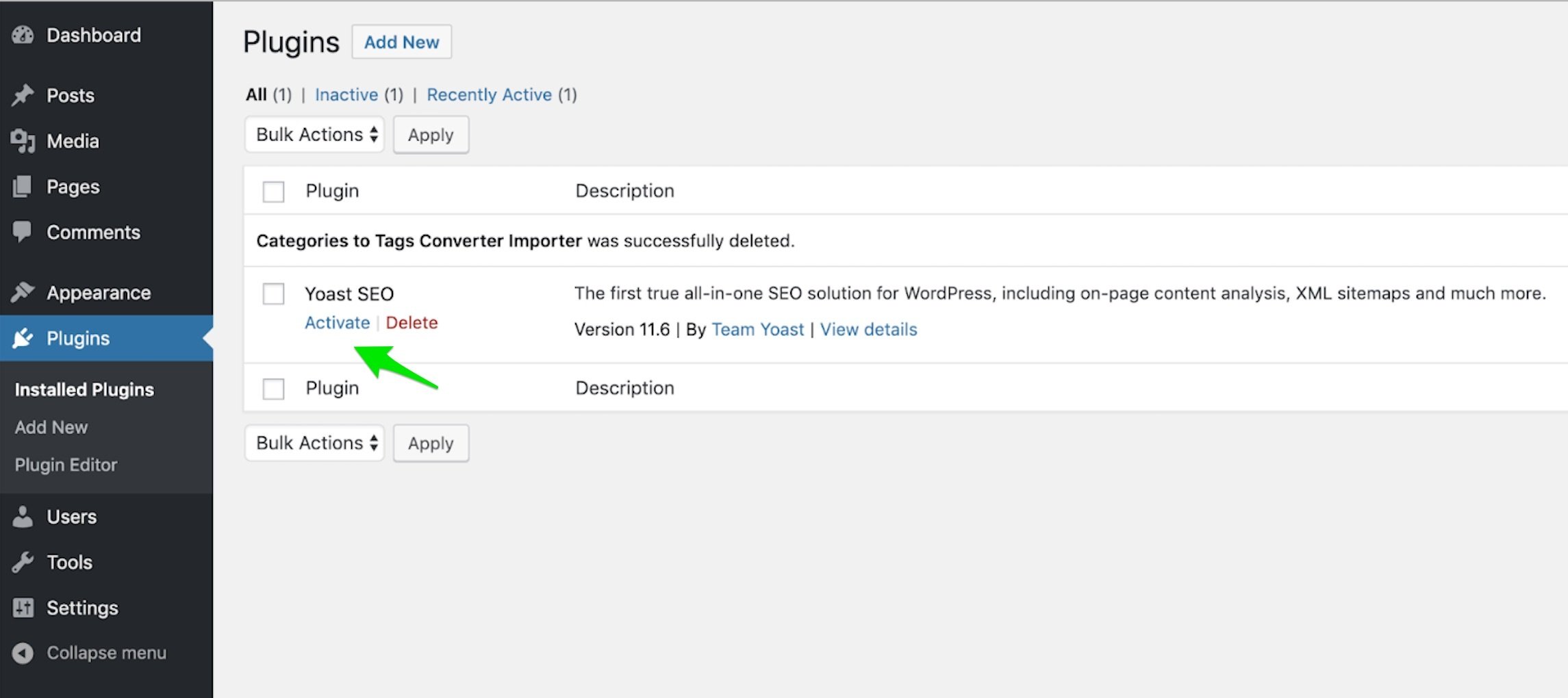 Clicking Activate is crucial for the plugin to work. You can activate the plugin in the plugin box by clicking the Activate button when the installation is complete. Alternatively, you can click the Activate link in the Plugins overview screen.