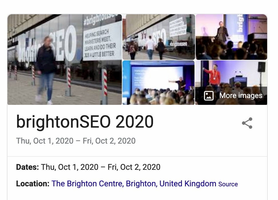 There are loads of highlighted events in Google. Also, there are several different rich results appointed to them. There’s a panel on the right-hand side of the screen that’s hard to miss. In addition, you can get your event on Google Maps for additional exposure and an even more interactive experience for your users. All this uses the Events Schema. You can even manage how your event appears and handle things like cancellations or date changes.