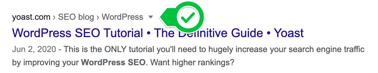 Those words above a post title form a breadcrumb path. This gives you an idea how the post your looking at fits into the site structure. Users love these, as well as search engines! To get these, simply activate them in Yoast SEO and add the necessary code to your theme — if your theme doesn’t have breadcrumb support as a default. You can find more information on breadcrumbs in our Help documentation.