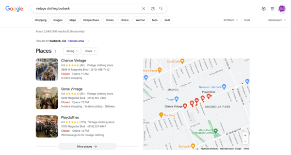 Search for specific clothes store in BurbankLooking for a local business using a specific term