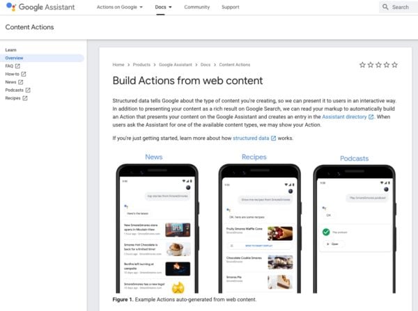 Google uses so-called actions to find and present content that users can interact with on smart devices with the Assistant. You can build your own actions, so assistants can respond with your specific content. Building those, however, can require a lot of custom work and, therefore, probably not a viable option for many site owners.