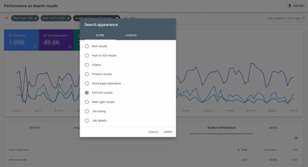The Search Appearance report in Search Console shows all the types of rich results your content has earned. What’s more, it gives you data on how people interacted with those rich results, which helps you improve the content for those rich results.