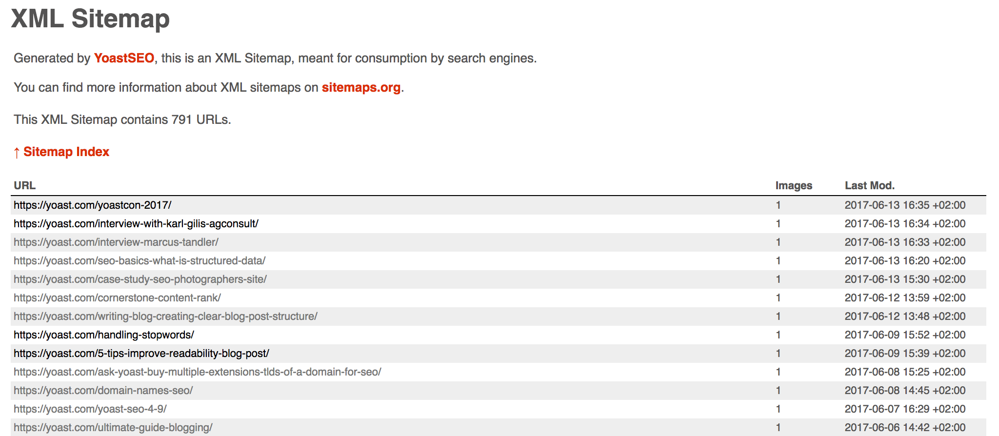 An XML sitemap is a file that contains information about your website. In plain language, it is a list of your most important pages. It is a useful tool that helps Google find and explore your site. Yoast SEO can help you to create a sitemap. All you need to do is enable the XML sitemap option and the sitemap will be automatically generated. It’s quite a time saver!