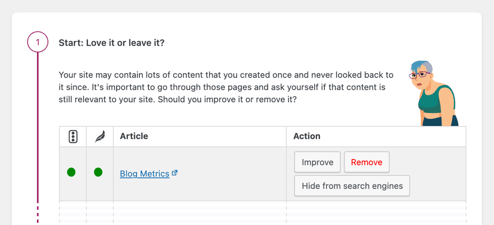 The workouts are actionable SEO exercises focused on a particular task, like improving your internal linking structure or cleaning up outdated content. These tasks can be quite overwhelming at times, especially when you have a large website. Let Yoast SEO take you by the hand and quickly guide you through these repetitive SEO tasks.