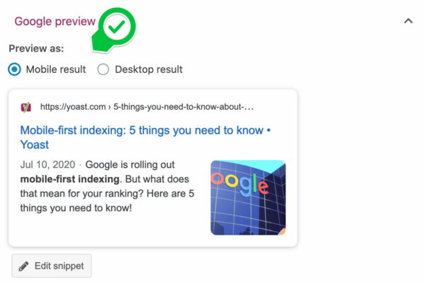 If your search traffic is mostly from mobile search result pages, make sure to optimize your mobile snippet in our Google preview.