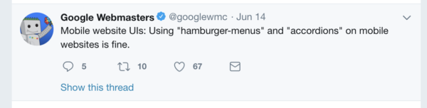 Of course, you can improve the mobile user experience by following best practices. For instance, Google explained that hamburger or accordion menus are perfectly fine to use. These kinds of menus make sense; they help a mobile user to browse through your website. Putting content behind a tab to make the mobile experience better is also totally fine.