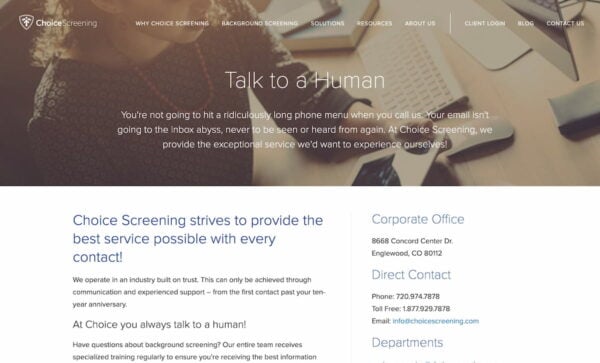 By explaining a bit more about your contact policies, you a) add text to an otherwise dull page and b) are able to manage expectations. Hubspot pointed us to this nice contact page example that does this well: ChoiceScreening.