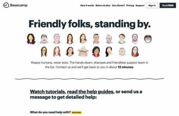 Basecamp shows their friendly faces in a unique way that’s totally on brand