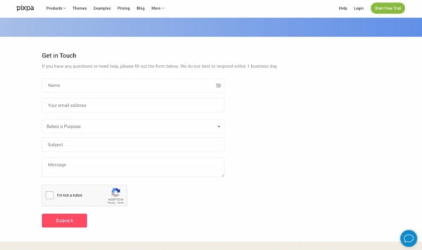 Don’t ask for too many details in your contact form — this one from Pixpa is on point