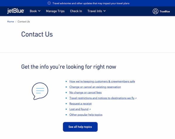 There are plenty of contact page examples that have done their call-to-action right, Jetblue for instance: