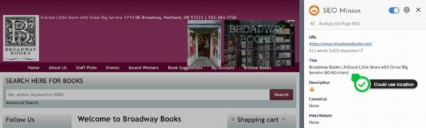 In this example, this title could have used a location to help in the local search results
