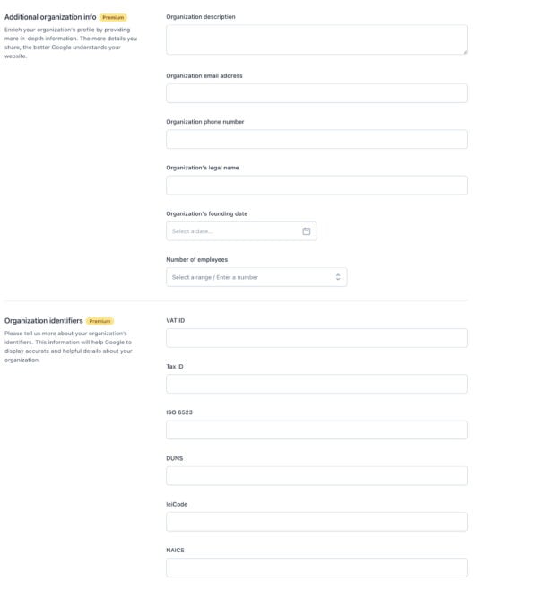 You can fill in a long list of details about your organization in Yoast SEO Premium